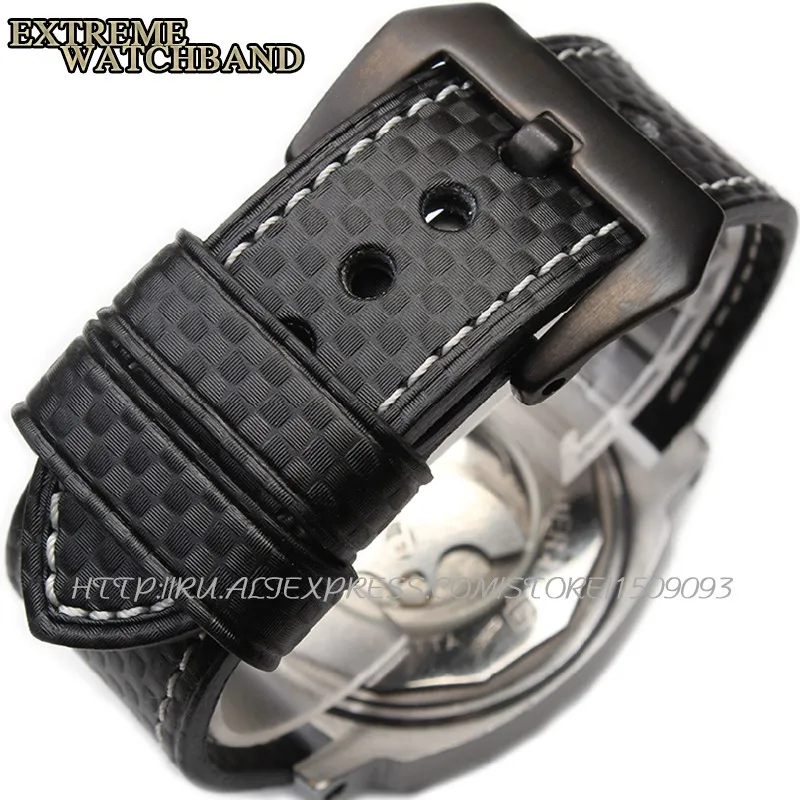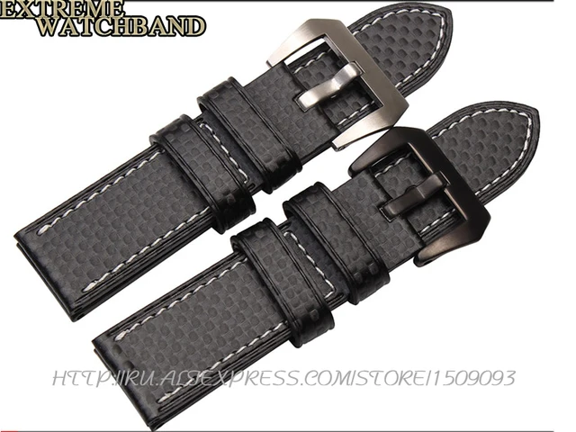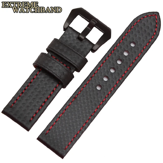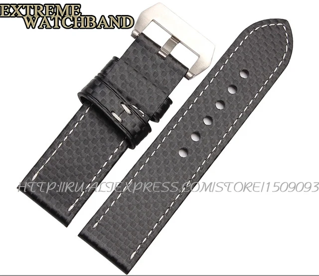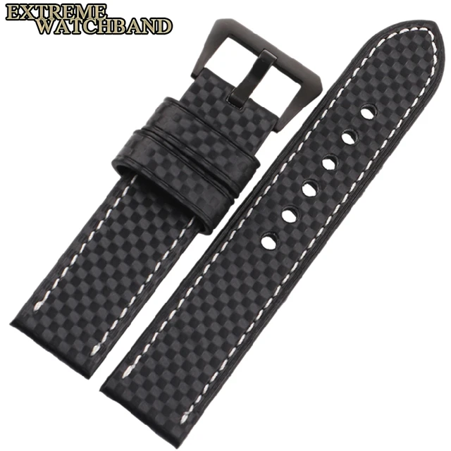 | [해외] 새로운 탄소 섬유 패턴 가죽 두꺼운 라인 수제 맞춤 가죽 cowskin 남성 가죽 스트랩 시계 줄 방수 24 미리메터 |