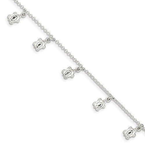 -. Title : Sterling Silver 9in Polished Turtle w/ 1in ext. Anklet