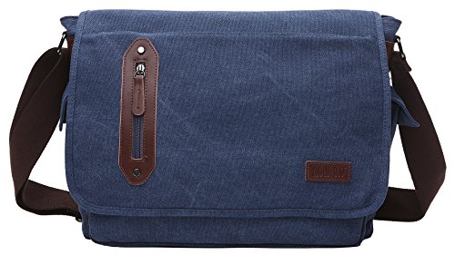 -. Brand : Yumoom -. Department : mens -. Feature : Material outside: Import quality high density washed Canvas,thick and sturdy; Lining material: Polyester. / Size: 15.2" L x 4.1" W x 14.2"H. / Structure: A total of 9 pockets,including flap cover,front side,back side,main,4 zipper pockets,2 side button closure pockets.Main pocket with 1 large laptop compartment,2 open inner pouch for card and moblie phone. / Highlander webbing haversack, convenient velcro design for easy access. / Retro and classic style,durable and great for school,outdoors,camping,hiking,climbing,business and traveling. -. Model : YM802 -. ProductGroup : Apparel -. ProductTypeName : LAGE -. Title : Yumoom Men's Vintage Canvas Messenger Bag Laptop Bag School Bag Travel Briefcase