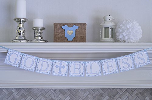 Blue God Bless Baptism Christening First Holy Communion Banner P006
