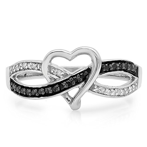 -. Binding : Jewelry -. Department : womens -. Feature : Other ring sizes may be shipped sooner. Most rings can be resized. / Items is smaller than what appears in photo. Photo enlarged to show detail / Satisfaction Guaranteed. Return or exchange any order within 30 days. / All our diamonds are conflict free. / Gemstone : Diamond -. Model : K1211-P -. ProductGroup : Jewelry -. ProductTypeName : FINERING -. Title : 0.20 Carat (ctw) Sterling Silver Black & White Diamond Promise Heart Love Criss Cross Overlap Ring 1/5 CT