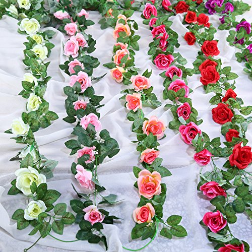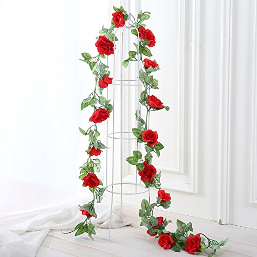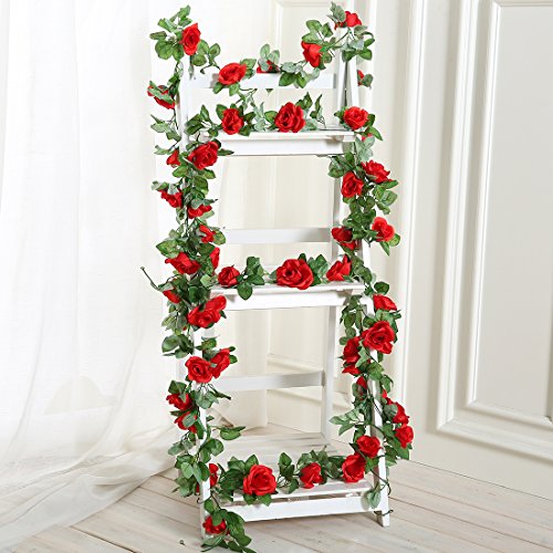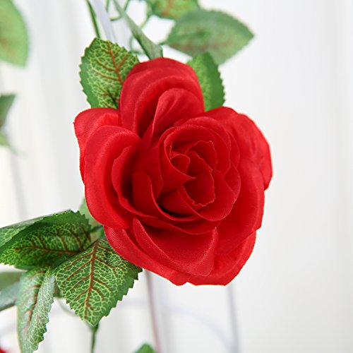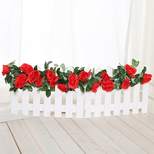 JUSTOYOU 7.2ft Artificial Rose Flower Silk Vines Fake Garland For Wedding Arch Home Festival Decor Pack of 2 (Red)