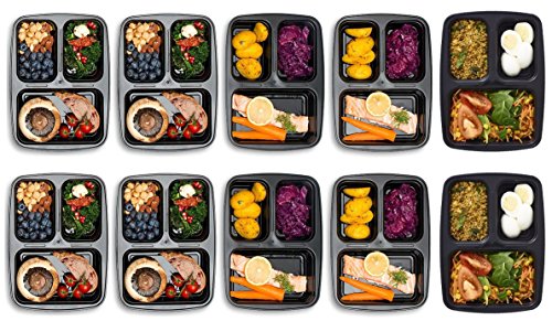 ★ EASY TO CARRY OUTDOORS - This set of 3-compartment microwaveable plastic food containers are ideal for daily meal prep and a great alternative to Tupperware for food storage in the kitchen! Whatever your goals, whether it's weight loss, healthy eating, adding muscle or simply saving money, our food containers offer the perfect solution! Simply stack in your fridge or slide into your gym bag. Take to school, work, camping, gym, hiking or even golf!