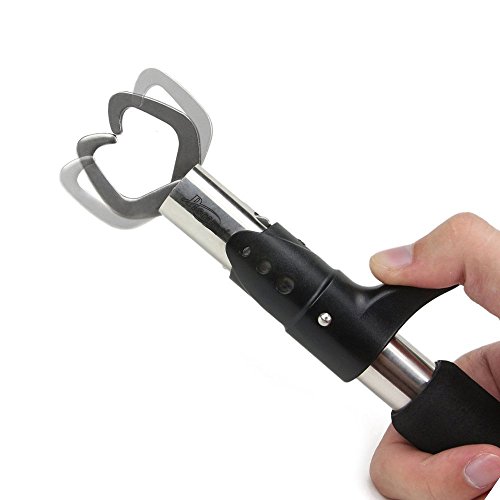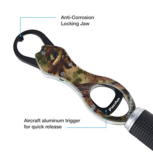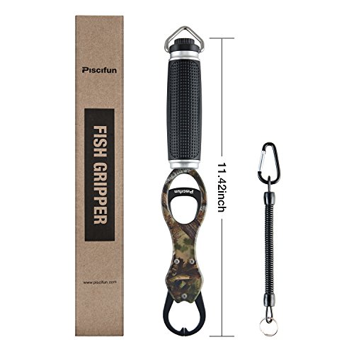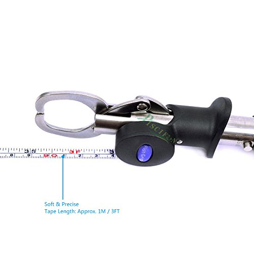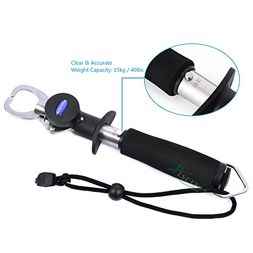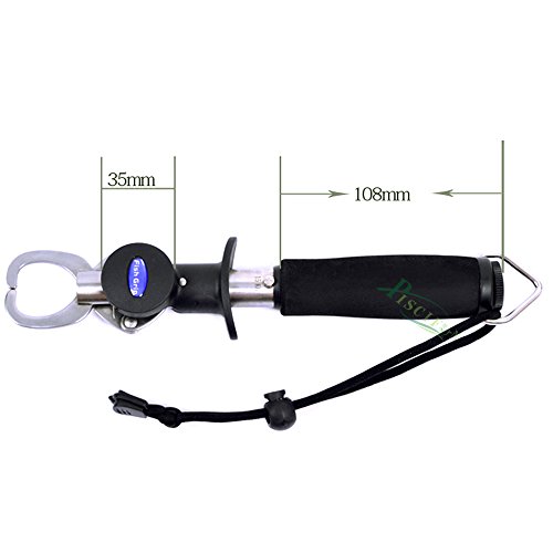 Is it hard to think that you can land a fish, remove it from the net, remove the hook from the fish, and release the fish without ever actually touching the fish? Quickly operated with the use of only one hand, this grip easily encompasses the lower jawbone of most species. It won't rub off a fish's protective slim layer, and provides a more hassle-free way of handling noteworthy catches for a few quick snaps of the camera before releasing them unharmed. Because of the extended handle, the Piscifun Gripper is the optimum way for landing fish in cold water, controlling toothy fish and keeping yourself clear of multiple treble hooks. The trigger sleeve slides along the main tube for fast opening, closing and locking. A rubberized grip gives you a firm grasp, and the main tube contains a precision scale which really blow away your accuracy considering for it only gives you half pound increments. The stainless steel tube and components won't break down in saltwater and will survive years of hard use. The General Piscifun Grip weighs fish up to 15kg/40lb plus. except weight length difference General Length: 8.6" Weight: 4.9oz Scale Ruler Length: 9.5". Weight: 8.5oz No hesitation to try one Piscifun Prodessional Fish Holder Lip Gripper at such a low price! The Package Includes: 1 x Fish Grip with Lanyard 0 |