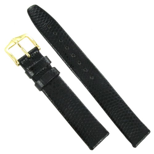 -. Title : 15mm Hirsch Rainbow Black Genuine Leather Lizard Grain Flat Watch Band 12302650