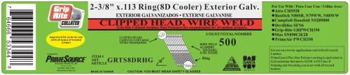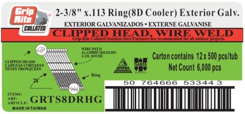 Grip-Rite 8d Cooler - 2-3/8-Inch x .113 HOT-DIPPED GALVANIZED, RING SHANK, 28? Clipped Head, Wire-Weld Collated, Stick Framing Nails - 500 per tub