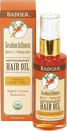 Condition & Restore. Daily life takes a toll on the hair: sun, wind, earth, water, pollutants, and styling can impact hair health. Badger's here to help restore the balance - let us pay the toll for you! Treat your hair to vitamin and antioxidant-rich oils and extracts, and watch the shine and luster return to overworked hair. We've selected our most powerful oils to deliver naturally occurring vitamins A, B, C, E, and K to nourish and replenish hair. Seabuckthorn and Pomegranate promote hair strength and elasticity, and Apricot is a potent emollient, imparting moisture and shine. Rosehip possesses regenerative properties, helping hair to return to its healthiest state.Feature