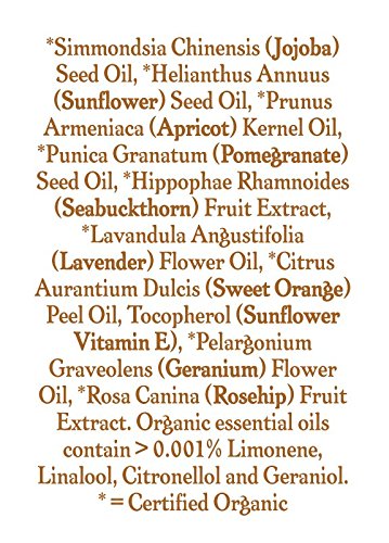 Seabuckthorn Oil protects cells from oxidative damage and aids in collagen production (rich in Vitamins A, B, C, E, & K).