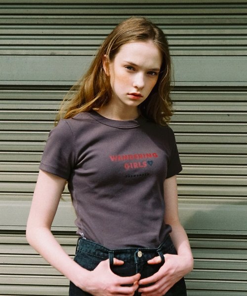 더완더(THEWANDER) HEART CROSS T-SHIRT CHARCOAL