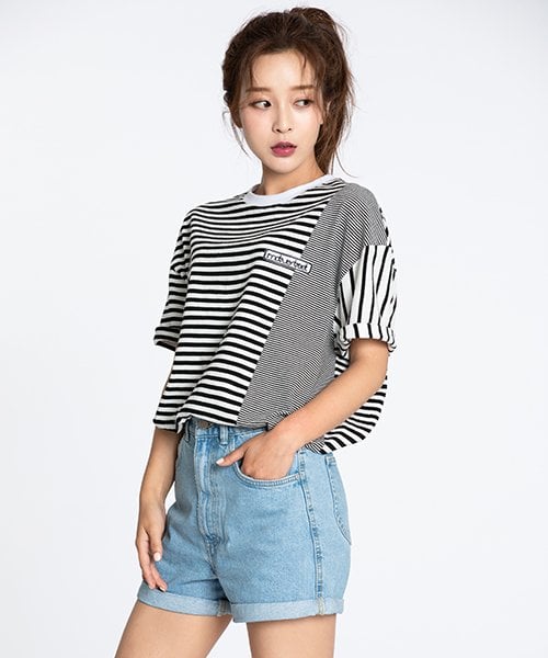 모티브스트릿(MOTIVESTREET) STRIPE MIX OVERFIT TEE BLACK