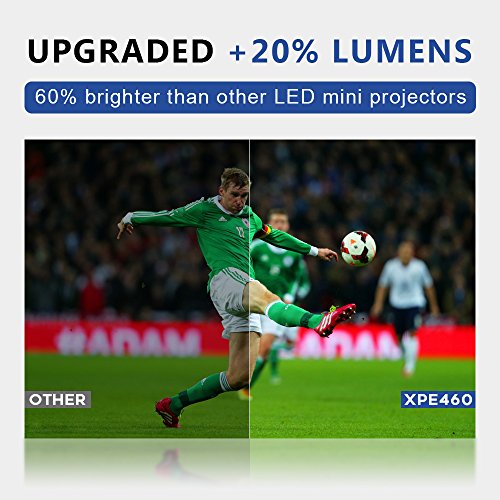 *This XPE460 mini projector adopted the lasted upgraded LED technology, provides more brightness than ordinary LED projector with 1000 Lumens. In dark room you will enjoy sharp image.