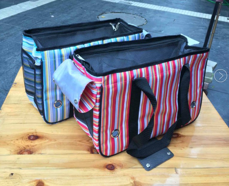 宠物包里面的布有时候是豹纹的,有时候是灰色的,外观不变的哦,只是里面的内衬有时候没有统一花色,豹纹和灰色随机,下面粉条纹和蓝条纹的内衬是灰色