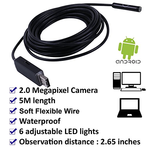 Ashmika Inspection Camera, Endoscope Andriod Camera 2.0 Megapixel HD Borescope With Light, CMOS HD Waterproof Snake Camera For Android And PC, Micro USB Type B & 2.0-(5M)