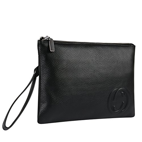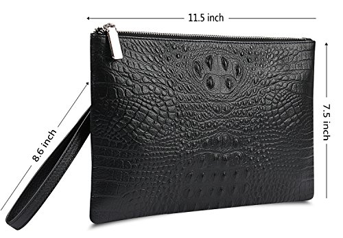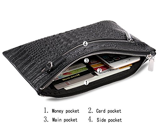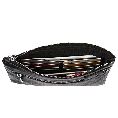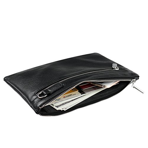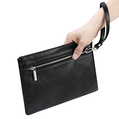-. Feature : HIGH QUALITY COWHIDE: A clutch size purse is made from soft cowhide leather (outside) and microfiber Leather (inside), with shiny silver-tone hardware, heavy duty zippers and detailed contrast stitching brightens up the wallet / REFINEMENT DESIGN: Detailed streamlined stitching with silver-tone smooth zippers has greatly highlights leather clutch purses' elegance. High quality hardware has high resistance to rust, corrosion and tarnishing. Shiny as a new one even years later / LARGE CAPACITY& NOT BULKY: This clutch is designed to keep your makeup/cash/cards and smart phone organized well and easy to use. Contains 2 compartments, 8 credit card slots, one interior zippered pocket inside and1 external zippered pocket / VERSATILE: Detachable leather wrist strap lets you switch between a clutch and wristlet. Classic and vintage simple design leather clutch with lightweight and soft hand feeling, can be taken as a evening bag / HASSLE FREE SATISFACTION GUARANTEE: We believe in the quality of our wristlet handbag. If you receive a product with defects in material or craftsmanship, we will replace the product