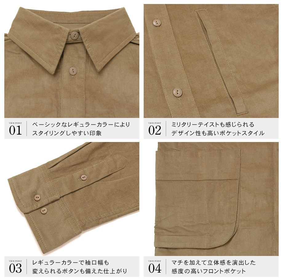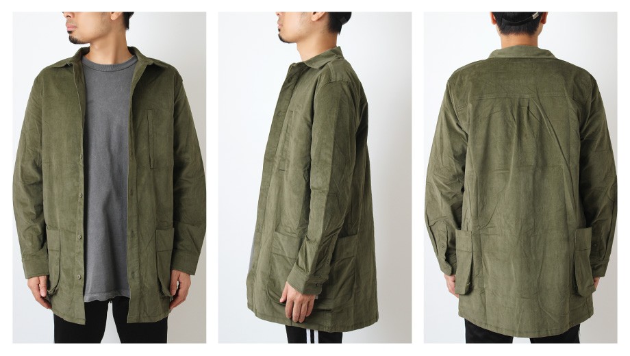 雰囲気抜群で都会的な印象のコーデュロイシャツコート。個性を演出するコーデュロイ生地の風合いがおしゃれな仕上がり。丈感も絶妙なスタイルで着こなしの幅も広いアウターです。マチを持たせたフロントポケットもギミックの効いたデザイン。