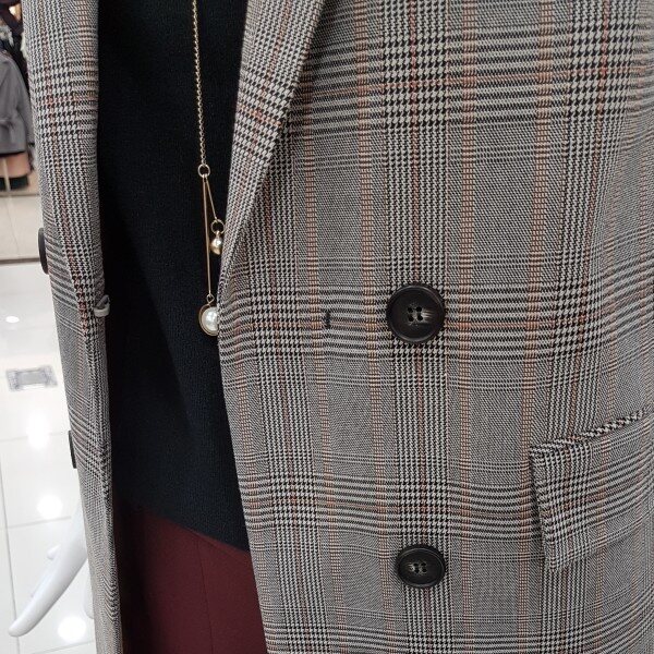 더블버튼디테일에 기본핏재킷이네요 배색롤업소매가 세련한 아이구용오렌지믹스체크에 은은하고 올드하지 않아요깔끔 세련 멋스럽게~^^고루 갖춘 아이네요총장88