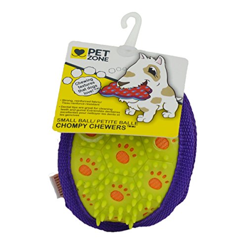 Pet Zone chomp chewers are Tough dog toys that your dog will love! the reinforced fabric is covered with durable dental tips that will stand up to determined chewers while also cleaning teeth and gums. These toys have three Tough layers to withstand chewing. The outside layer has dental tips that promote healthy teeth and gums. The middle layer is made of a woven fabric that hold up to Tough play. The inside layer is reinforced fabric that helps insure a long life for the toy. With five styles of toys, chomp chewers are perfect for all types of play.Feature