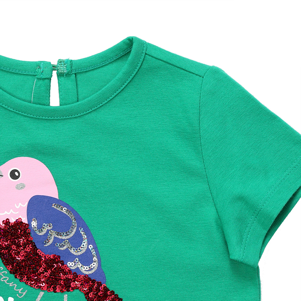 상세설명-입체적인 스팽글자수처리가 돋보이는 롱티셔츠입니다.
