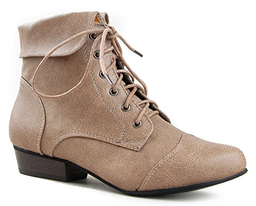 Binding : Apparel Product Description Breckelles - Ladies Indy-11 Bootie Boot, Foldover Lace Up Boot, Shaft Measures Approximately 4 3/4 inches from Arch, Heel Height Approximately 1 inch, Low Heels, Ankle High, Pointed Toe, Does Not Contain Animal Products, Man Made Materials, Made in China, #38021 38-021 0