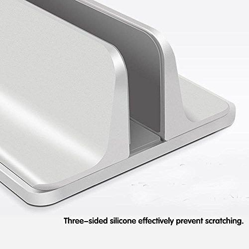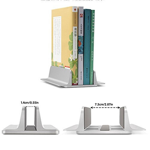 -. Feature : Premium Material:High quality anodized Aluminum material makes it sturdy and durable,The Electroplating Sandblasting silver surface matches your Macbook perfectly. / Save your desk space: Vertical notebook stand save your desk space,Avoid water splashing your laptop. / Three side silicon mate,protect your note book, and avoid from the surface scratch risk.non-slip rubber mat on the bottom ensure stable placement. / Adjustable width:with 4 sliding tracks,you can easy to adjust width to meet different computers' thickness,adjustable size is creatively designed varying from 0.55 to 2.87 inch.it can also be used as a bookshelves. / Fits iPad Pro / MacBook Air / MacBook Pro / Surface Pro and other Laptop Notebook, but not compatible with 17inch laptop or other bigger dimension computer.