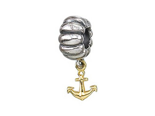 -. Title : Zable 14k Anchor Dangle Bead / Charm Silver and 14k