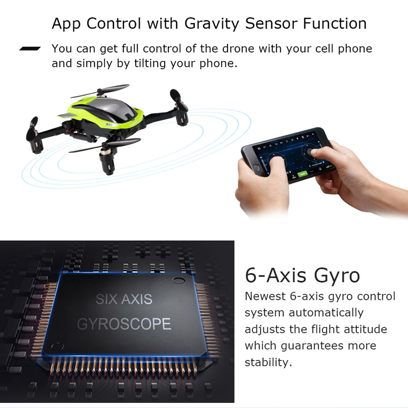 Intelligent altitude hold can precisely hold the quadcopter at any height desired; 6 axis gyro for more stable flight.
