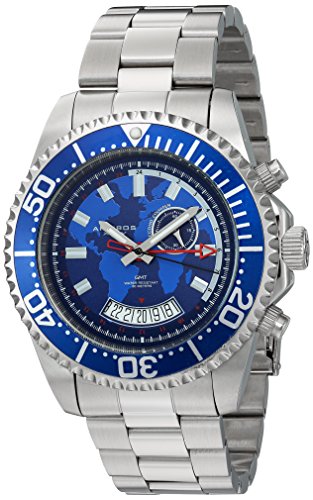 -. Title : Akribos XXIV Men's Multi-Function Silver-Tone Stainless Steel Case with Blue Globe Design Dial and Blue Bezel on Silver-Tone Stainless Steel Bracelet Watch AK955SSBU