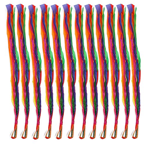 Features - Color: Multi-colored. - Material: Dacron. - Length: 100CM for each. - A set of 12 pcs colored ribbon backed together. - Used for a variety of fun activities, such as decorative props, scene layout and party decorations. - Perfect for kids who like to twirl, dance and be active. - Great for use in group physical education classes.Feature