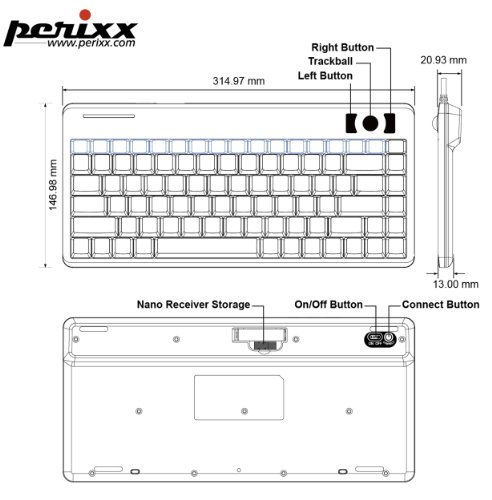 Title : Perixx PERIBOARD-706PLUS, Wireless Mini Keyboard with Trackball - Nano Receiver - On/Off Switch - 2xAAA Brand Batteries Included - US English Layout