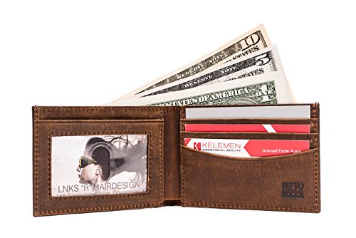 -. Title : Men Minimalist Wallet - Premium Grain Crazy Horse Genuine Leather - Advanced RFID Secure Blocking Technology - Small and Slim Fits Comfortably as a Front Pocket Wallet