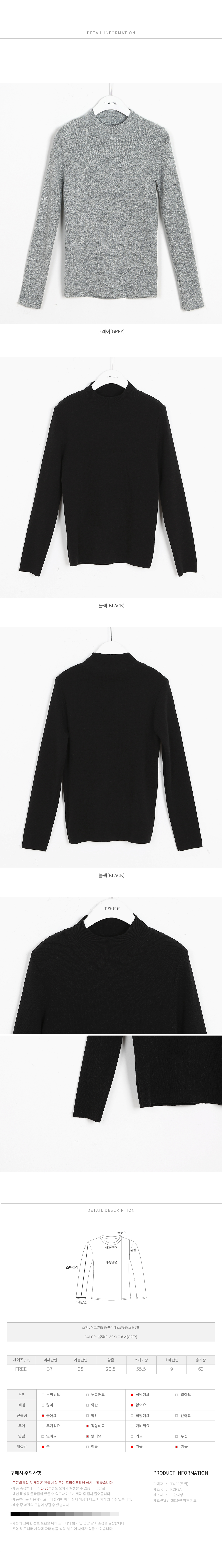 ![]() "베스 기본 니트" COMMENT 니트 촉감에 예민한 분들도 걱정없이 착용가능한 반목폴라 니트 소개해드려요. 편한 착용감과 부드러운 촉감, 신축성까지 너무 완벽한 반목폴라 니트에요! 전체적으로 타이트한 핏감으로 여성스러운 바디라인을 연출해드려요! 베이직한 디자인으로 어디에나 코디하기 좋으며 지금부터 봄까지는 요 아이만 이너로 입으시고 아우터를 걸쳐도 딱 좋을 아이템이에요! 다른 디테일없이 심플한 아이템이라 팬츠, 스커트, 끈 원피스 등 어디에나 잘 어울릴 완소템으로 적극 추천드려요#10084;#65039; COLOR 블랙(black),그레이(grey) FABRIC 아크릴89% 폴리에스텔9% 스판2% SIZE TIP 어깨37 가슴38 암홀20.5 소매기장55.5 소매단면9 총장63 프리사이즈로 44~마른66 고객님께 잘 맞으실 것 같아요. 트위 모델(키:162)이 착용했을 때 골반을 덮어주는 기장감이였어요. (재는 위치 및 재봉과정에 따라 오차가 있을 수 있습니다) *모든의류의 첫 세탁은 드라이크리닝 또는 찬물 손세탁을 해주시는게 좋아요* ![]() ![]() ![]() ![]() ![]() ![]() ![]() ![]() |