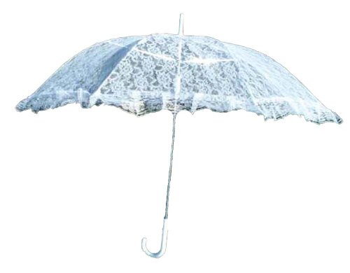 Binding : Apparel Product Description Delicate white lace parasol for weddings, photographs or performances! This lace parasol pushes open quickly and easily. The white parasol measures 26 inches across when opened and has a lightweight, curved plastic handle. The length measures 23 1/2 inches from the top of the tip to the end of the curved handle. A nice size for girls or petite ladies! 0