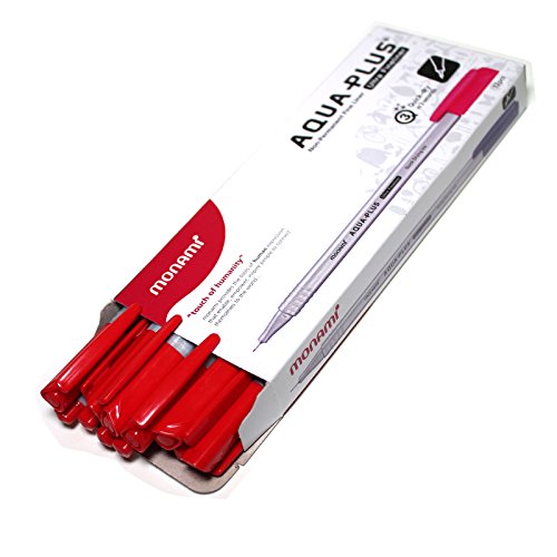 -. Title : Monami Aqua-plus Triangular Design Water-based Ultra Fineliner -0.3mm- Red - Pack of 12 Pens