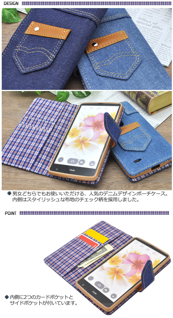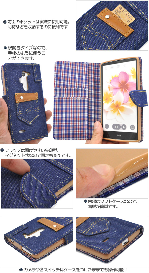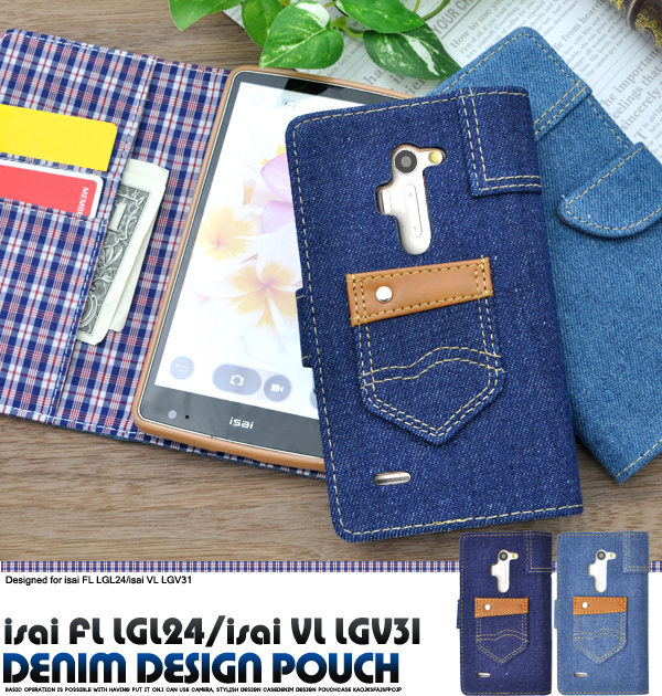 isai FL LGL24/isai VL LGV31用デニムデザインケースポーチ(ジーンズデザイン)