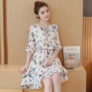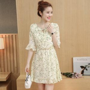 袖口やスカートの裾には、品のあるフレアーがあり、春らしい小花柄もキュート♪