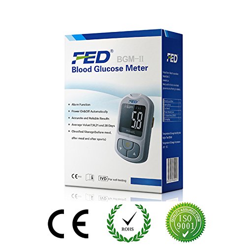Studio : FED Publisher : FED Binding : Health and Beauty Product Description Advantage: - Unique siphon hole for the blood-sucking on both sides, three-electrode structure Patent Test Strip, more stable and accurate on the test result. - US imported 3M Hydrophilic film - DuPont PET Substrate - Electronic elements from Japan - The Best International Oxidase (United Kingdom BBI Brand) - Carbon electrode (More stable quality than normal silver mate rials electrod e) - Bilateral blood-sucking without bias:The same drop of blood sample, left and right sides of the inhalation measurement results are the same, only the FED can do it. - Automatic temperature compensation precision design improves the stability of blood glucose monitoring system - Reaction zone unique patented technology test results more accurate - Temperature compensation precision design improves the stability of blood glucose monitoring system - If blood groove of strip is not full, the machine does not test technology, to ensure that the test accuracy, stability Specification: Type: Flank suction Blood Test time: 10 seconds (More accurate) Measurement range: 20~600mg/dL(1.1~33.3mmol/L) Blood sample type: Fresh capillary whole blood Blood sample volume: less than 3μL Sample type for calibration: Venous plasma Memory: 500 results Working temperature: 5~42℃ Storage temperature: -20℃~55℃ Storage humidity: not higher than 85% RH Size: 85mm×54mm×19mm Weight: About 50g Battery: DC 3V CR 2032 lithium battery (not included, because of the International shipment limited) 0