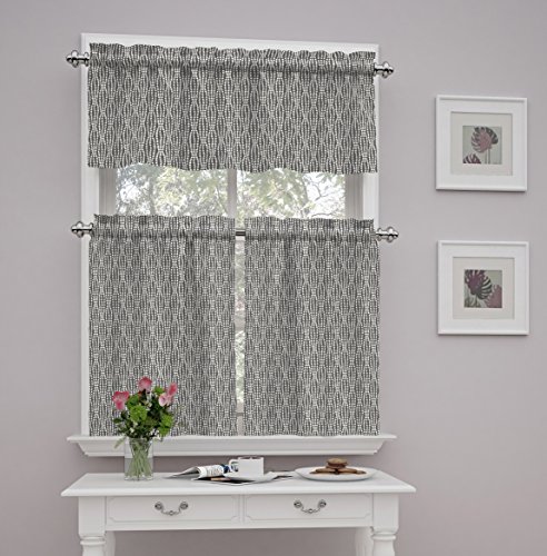 Traditions by Waverly Strands Tier and Valance Set, Charcoal