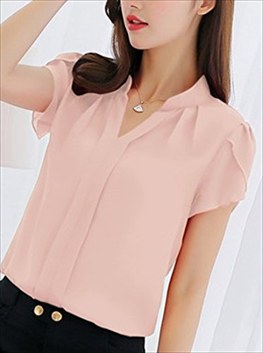 -. Feature : 【S】 着丈59cm バスト88cm 肩幅35cm 袖丈20cm 【M】 着丈60cm バスト92cm 肩幅36cm 袖丈20.5cm 【L】 着丈61cm バスト96cm 肩幅37cm 袖丈21cm 【XL】 着丈62cm バスト100cm 肩幅38cm 袖丈21.5cm 【XXL】 着丈63cm バスト104cm 肩幅39cm 袖丈22cm 【3XL】 着丈64cm バスト108cm 肩幅40cm 袖丈22.5cm / シンプルな デザインの きれいめ ブラウス シャツ カットソー セーター インナー タンクトップ デニム ボトムス アウター チェスター トレンチ コート レディース ウール オーバーコート テーラードなども揃え、春 夏 秋 冬 の季節に合わせ、20代、30代、40代と年齢 を問わず おしゃれを 楽しんでいただけます。 / Vネックのスタンドカラーがスタイリッシュでさわやかな ブラウスです。 えり袖にタックが施され、華奢見え効果で嬉しいデザイン。きちんと感もあってビジネスにも使える人気 シフォン ブラウスです。 肌触りがよく軽量タイプのブラウスなので、着心地もよくフォーマルな場面やお仕事、カジュアルにもデイリーに使えますね。 サイズも小さいSサイズから大きいサイズ 3XL まで揃えました。 カラー 4色【 ホワイト / ピンク / レッド / 水色 】 春 夏 シャツ ブラウス 大きいサイズ レディース コーディネート 人気 カットソー プルオーバー Tシャツ 半袖