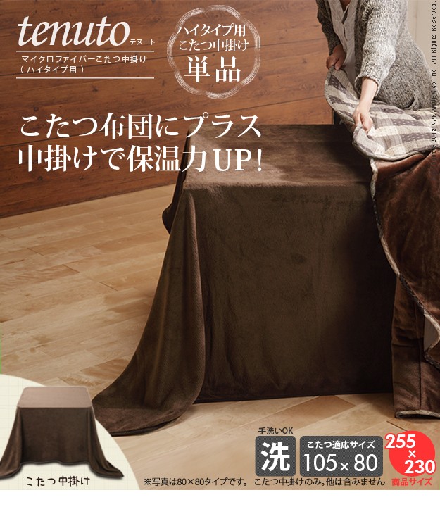 マイクロファイバー こたつ中掛け tenuto〔テヌート〕 ハイタイプ 105×80cmこたつ用(255×230cm) こたつ布団 こたつ 中掛け 長方形
