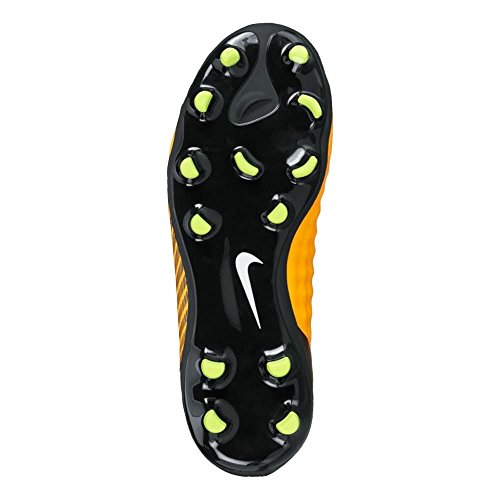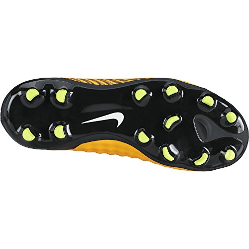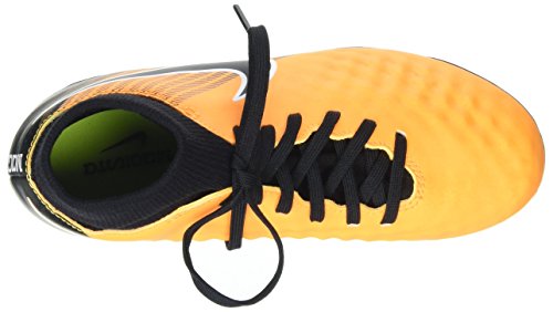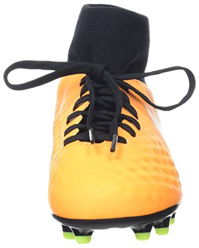 -. Binding : Apparel -. Brand : -. Color : Laser Orange/Black-white-volt -. Department : boys -. Feature : Dynamic Fit collar wraps the ankle for a sock-like fit / Synthetic leather textured upper for enhanced ball control / Asymmetrical lacing system expands the ball control area / Firm-ground (FG) cleats for use on slightly wet short-grass fields -. Label : -. Manufacturer : -. Model : 917776 -. PackageQuantity : 1 -. ProductGroup : Shoes -. ProductTypeName : SHOES -. Publisher : -. Studio : -. Title : Kids' Magista Onda II Indoor Soccer Shoes