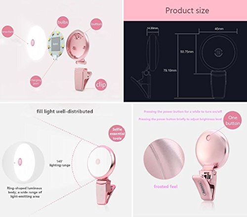 Easy to Use: Clip the selfie ring light on your Phone; Press power button; Adjust brightness level.