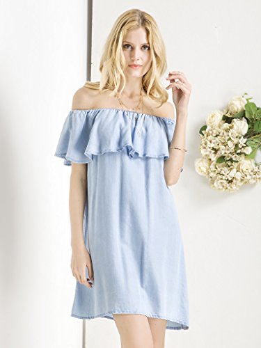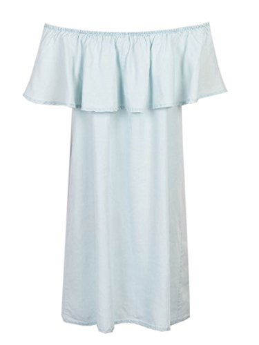 Studio : Clothink Publisher : Clothink Binding : Apparel Product Description Made from 100%Cotton. Our size is Asia size,not US/UK size. Asian S(US 0):S:Bust:34.65inch,Length:28.35inch; Asian M(US 2-4):M:Bust:36.22inch,Length:29.13inch; Asian L(US 6):L:Bust:37.8inch,Length:29.92inch; COLOR:Blue DETAIL:Ruffle DRESSES LENGTH:Knee length MATERIAL:Cotton NECKLINE:Off the shoulder SILHOUETTE:Shift 100%Cotton Non-stretchable Material Hand wash cold.