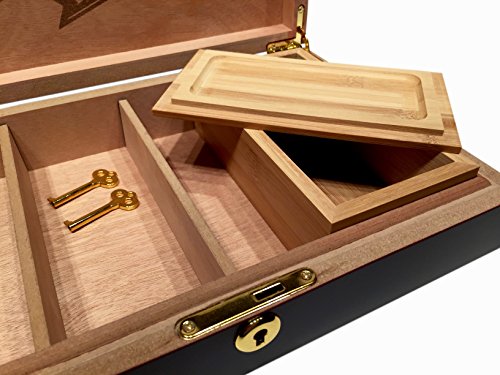 - ★ REMOVABLE STASH BOX - Comes with a bamboo stash box with a rolling tray lid. Easily remove the inner stash box to roll your own or take on the go. The inner box measures 8.5” long, 3.5” wide, and 2” tall.