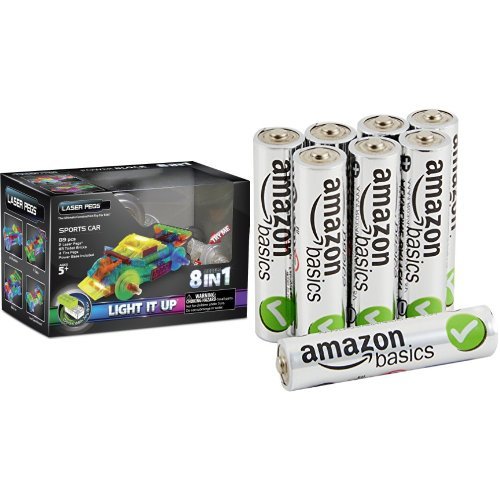 -. Title : Laser Pegs 8-in-1 Sports Car Building Set with AmazonBasics AAA Batteries Bundle