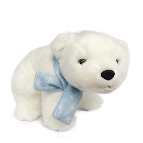 -. Title : Stuffed Polar Bear With Snowflake Scarf Plush - Realistic Animal Toy - 11 Inch Length