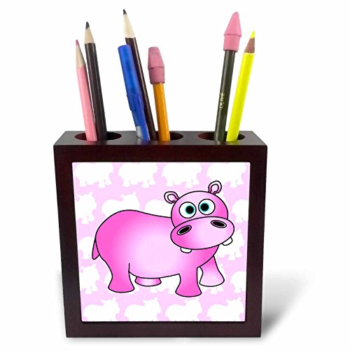 3dRose ph_6132_1 Pink Hippopotamus Tile Pen Holder, 5-Inch