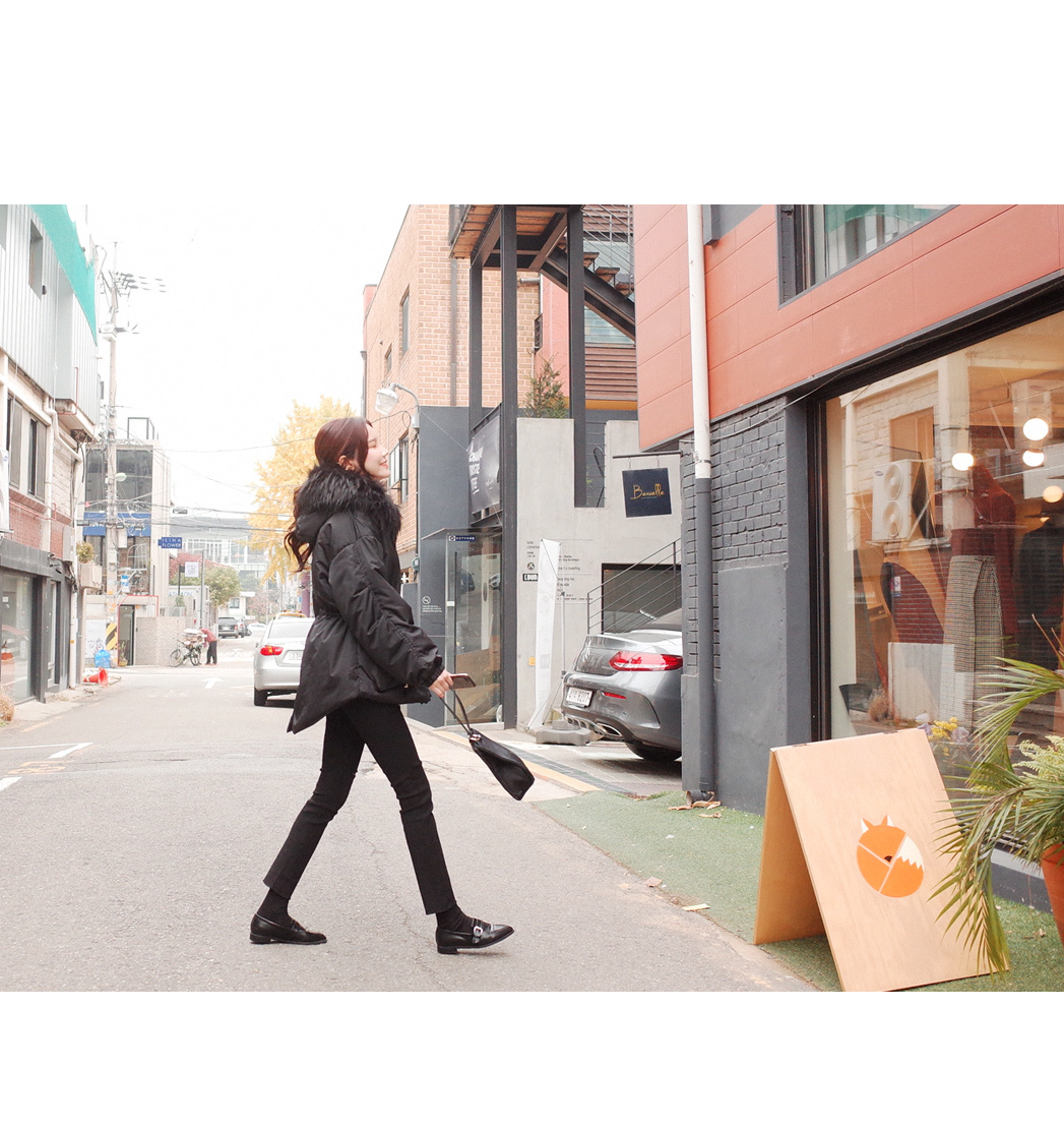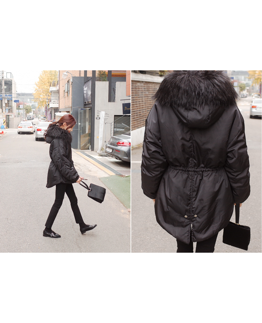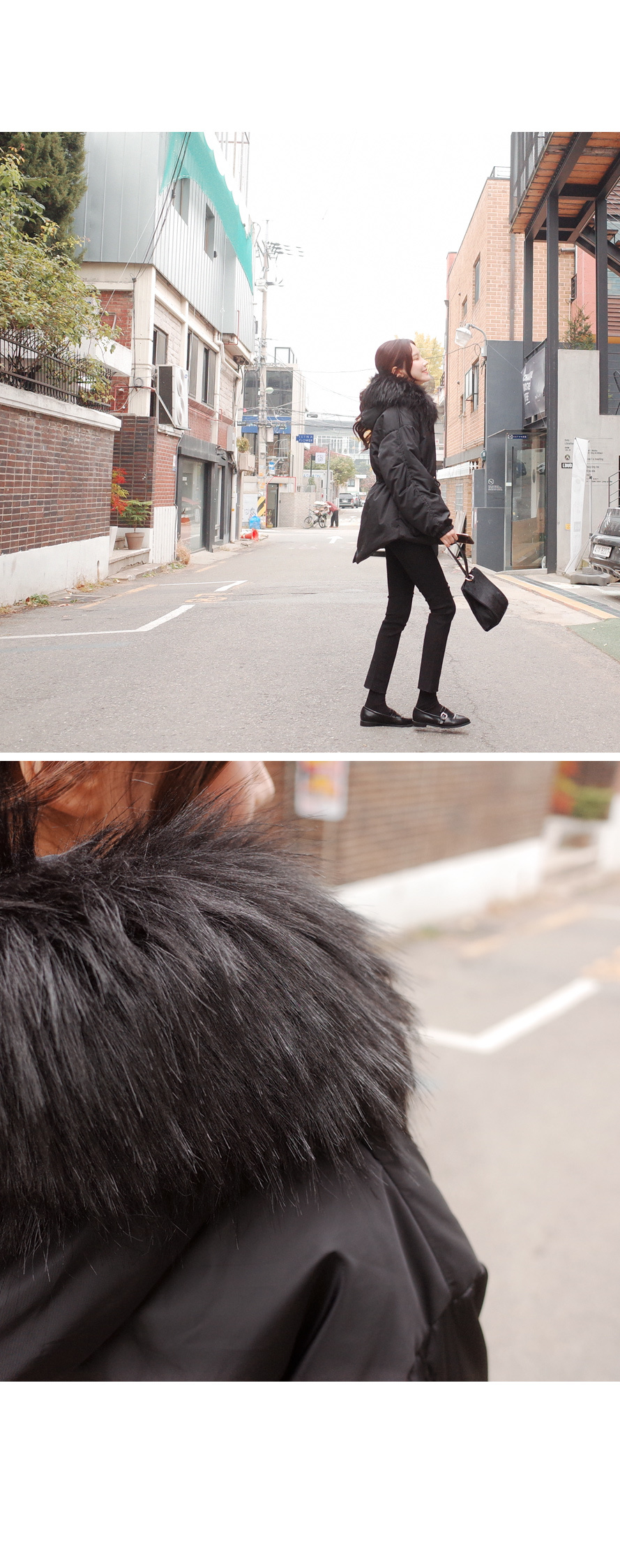 후드스타일이며 후드라인에 퍼가 달려있으며 후드 털은