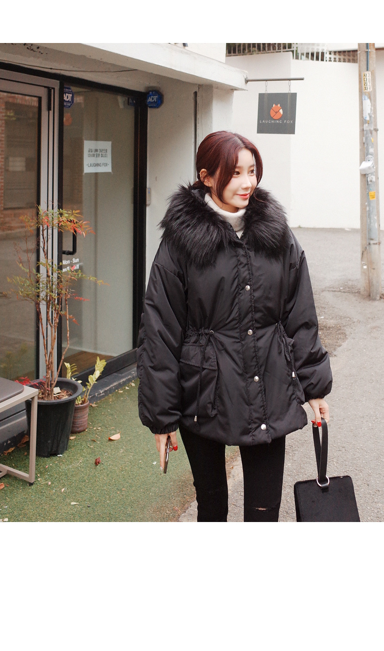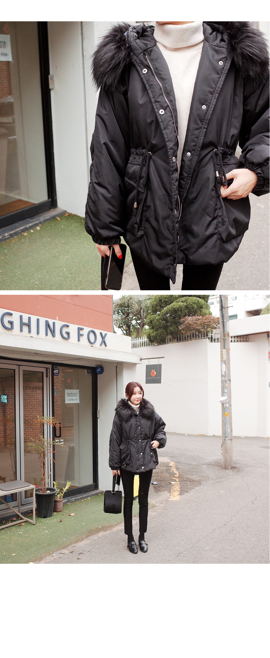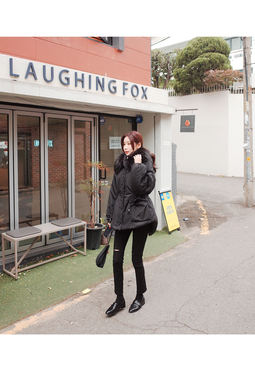 후드스타일이며 후드라인에 퍼가 달려있으며 후드 털은