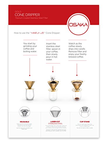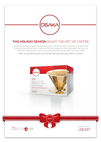 Osaka Titanium Coated Pour Over Cone Dripper, Reusable Stainless Steel Coffee Filter with Cup Stand "Himeji-jo"