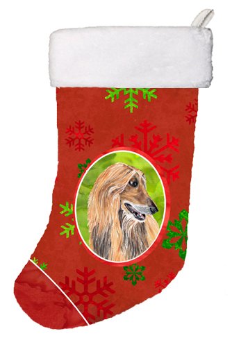 Caroline's Treasures Afghan Hound Red Snowflakes Holiday Christmas Stocking, 11 x 18", Multicolor